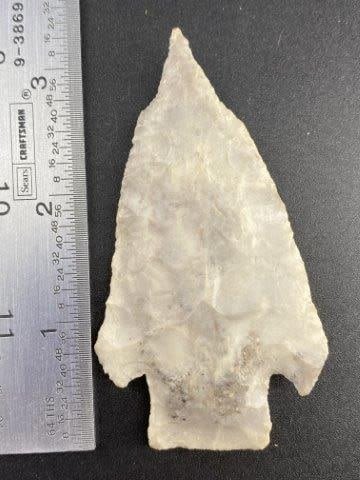 Please see picture for measurement. These artifacts are from The Leonard & Vivian Nelson Collection. They were lifelong farmers with ancesteral roots in Dekalb County Illinois. Leonard & Vivian worked all of their lives farming & they collected these wonderful artifacts over their 100 years of life. KEY WORDS: NATIVE AMERICAN INDIAN ARTIFACT ARTIFACTS ARROWHEAD ARROWHEADS MISSISSIPPIAN QUAPAW CADDO POTTERY COINS MORGAN DOLLAR PEACE DOLLAR SILVER COINS