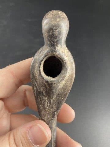 Crow Effigy Pottery Pipe broken & glued Indian Artifact Arrowhead