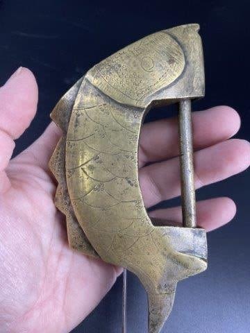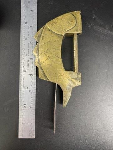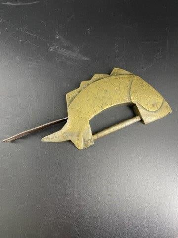 Brass Fish Effigy Lock with Key Indian Artifact Arrowhead