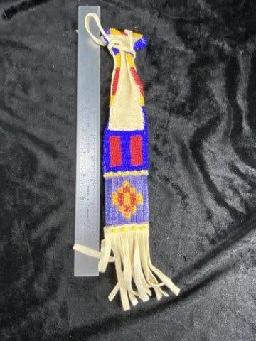 Quilled & Beaded Strike a Light Bag Indian Artifact Arrowhead