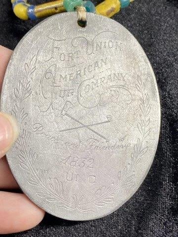 1832 Fort Union American Fur Company Medalion with Trade Beads Indian Artifact Arrowhead