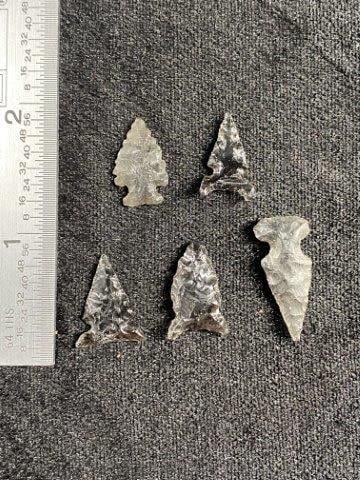 5 Nice Obsidian Arrow Points Indian Artifact Arrowhead