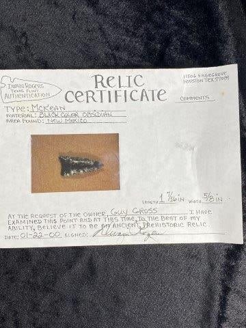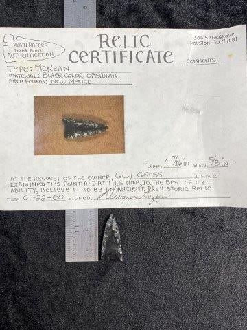 Please see picture for measurement. It is from New Mexico. It comes with a Dwain Rogers Certificate of Authenticity. ex-Guy Gross Collection. These artifacts are from multiple collections from around the United States. KEY WORDS: NATIVE AMERICAN INDIAN ARTIFACT ARTIFACTS ARROWHEAD ARROWHEADS MISSISSIPPIAN QUAPAW CADDO POTTERY COINS MORGAN DOLLAR PEACE DOLLAR SILVER COINS