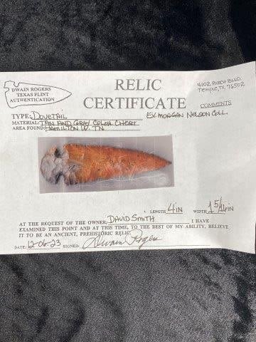 Please see picture for measurement. It is from Hamilton County Tennessee. It comes with a Dwain Rogers Certificate of Authenticity. ex- David Smith Collection. These artifacts are from multiple collections from around the United States. KEY WORDS: NATIVE AMERICAN INDIAN ARTIFACT ARTIFACTS ARROWHEAD ARROWHEADS MISSISSIPPIAN QUAPAW CADDO POTTERY COINS MORGAN DOLLAR PEACE DOLLAR SILVER COINS