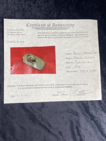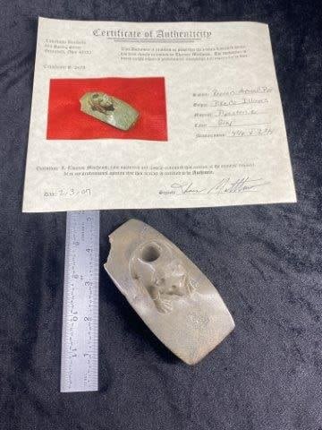 It is 4&3/8 by 2&3/4. It is from Pike County Illinois. It comes with a Thomas Matthews Certificate of Authenticity. Please see picture for measurement. These artifacts are from multiple collections from around the United States. KEY WORDS: NATIVE AMERICAN INDIAN ARTIFACT ARTIFACTS ARROWHEAD ARROWHEADS MISSISSIPPIAN QUAPAW CADDO POTTERY COINS MORGAN DOLLAR PEACE DOLLAR SILVER COINS