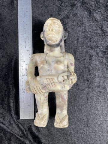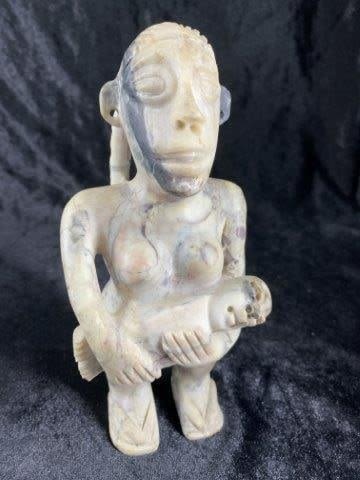 Pre-Columbian Stone Woman with Baby Effigy